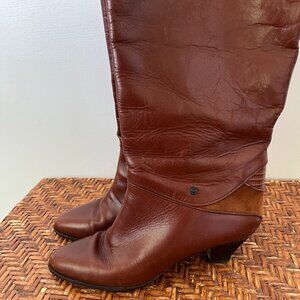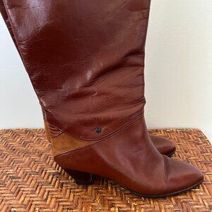 Vtg Etienne Aigner Caramel Leather Knee High Midi Heel Riding Boots 8M