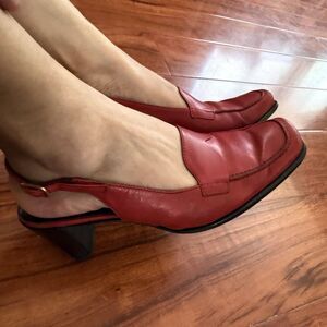 Vtg Etienne Aigner Leather Square Toe Red Loafer Sling Back Heels Sz 6.5