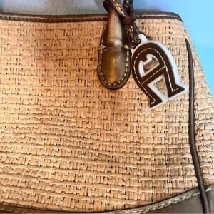 Vtg Etienne Aigner Tan Woven Wicker Bronze Detail Shoulder Bag Ladylike