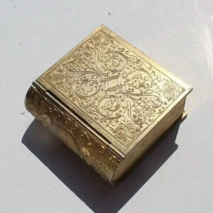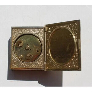 Vtg Europa Germany 2 Jewel Wind Up Book Alarm Clock W/ Photo Holders Working