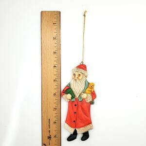 Vtg European Santa Holding Dog Christmas Hanging Ornament 9" Holiday