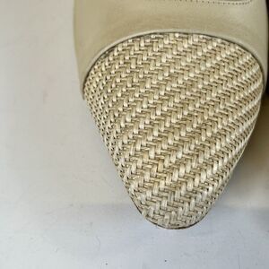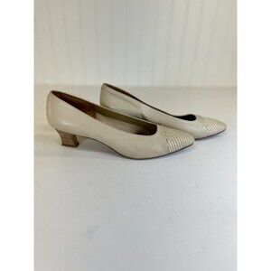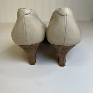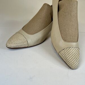 Vtg. Evan Picone Beige Nappa Leather Pumps, Sz 10 M, Woven Toe Block Heel. Spain
