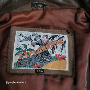 Vtg Exploration Leather Field Chore Barn Coat Jacket XXL Brown Preppy 90's