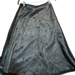 Vtg Express Sheer Sequin flare Skirt 2 Black Halloween Goth Formal Romantic