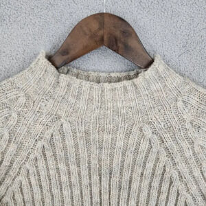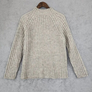Vtg Express Tricot Beige Ribbed Knit Sweater Wool Blend Crew Neck Womens M GT