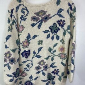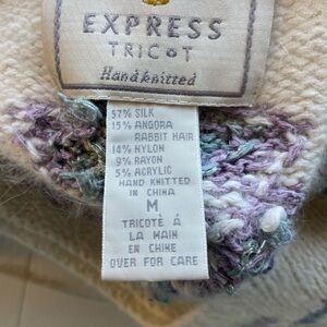 Vtg Express Tricot Sweater Silk Angora Blend Floral Hand Knit Grandma Fairy