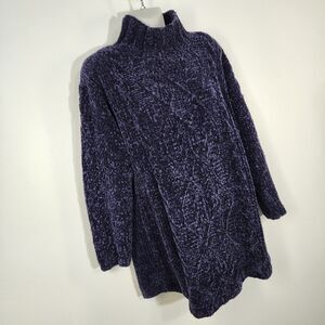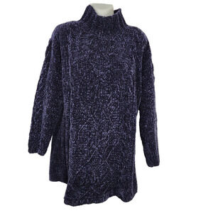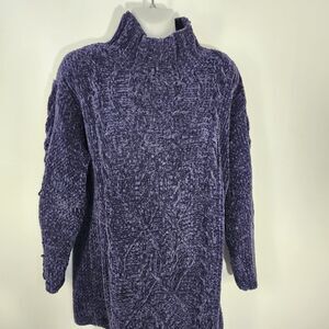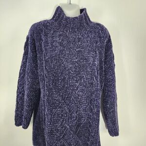 Vtg Express Tricot Sweater Womens Small Hand Knit Oversized Mock Neck Fisherman