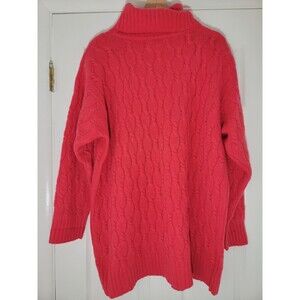 Vintage from 1990 s Express Tricot 70% lambswool 20% Angora rabbit hair 10% nylon luxurious light and lofty knit sweater. Allover cable pattern. Very Long , tunic or even mini dress length, turtleneck, and oversized. Size M. Made in Hong Kong. No holes stains or snags.