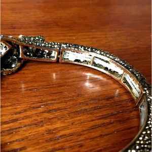 Vintage Exquisite Goldtone Crystal Rhinestone Leopard ~ Hinged Bangle Cuff Bracelet 3" x 2.5"