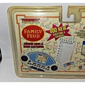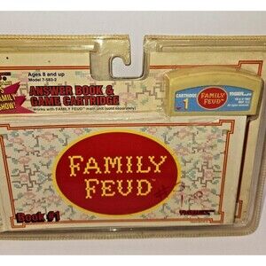 Experience the excitement of the popular TV game show with this Family Feud handheld electronic game cartridge pack #1. Featuring Tiger's top-quality electronics, this game allows players to compete against each other in answering survey questions. The game includes two answer books and provides hours of fun for players ages 8 and up. This vintage game cartridge is from 1997 and is in mint condition - never opened or used. It is a great addition to any collection and a perfect gift for fans of the game show. Buy now and bring the excitement of Family Feud into your home!
