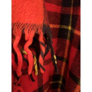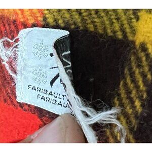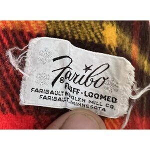 Vtg FARIBO Fluff Loomed Red Black Plaid Throw Blanket 55”x55” Camp Picnic READ