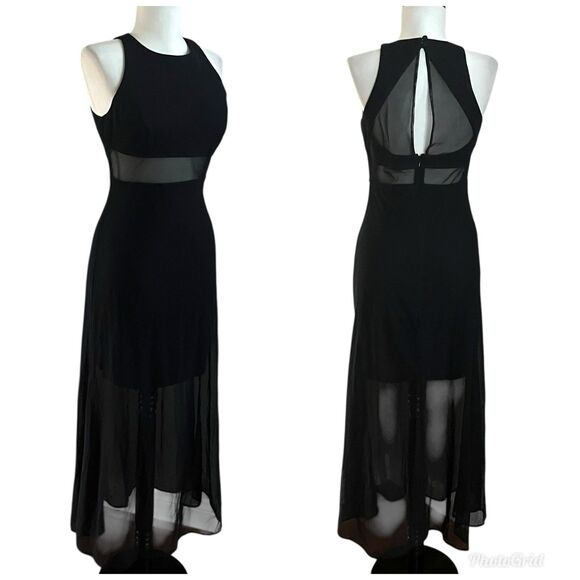 Vtg FAVIANA Sheer Mesh Midi Dress 4 Black Whimsigoth Fairy Grunge Gothic Indie