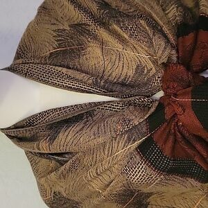 Vtg FC Navy Blue Rust Gold Leaf Pattern Fringe Shawl