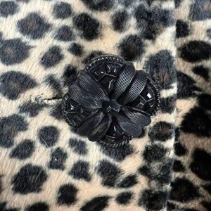 Vtg F.L. Malik Size L Cropped Leopard Mismatched Button Faux Fur Jacket