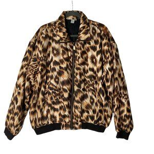 Vtg FUDA International Leopard Cheetah Print Silk Bomber Jacket Women Medium