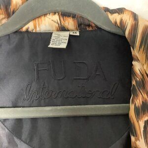 Vintage Fuda International Womens 100% Silk Jacket Size M Cheetah Full Zip