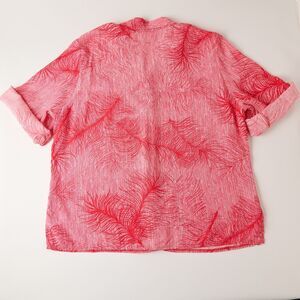 Vtg Fabiani Womens XL Pink Feather Button-Up Shirt Roll Tab Sleeve Boho Retro