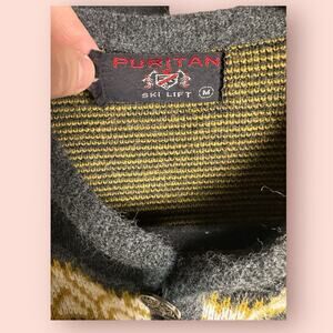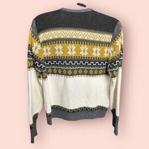 Vintage Fair Isle Snowflake Sweater Gray Yellow Cardigan Grandpa Winter Medium Ski