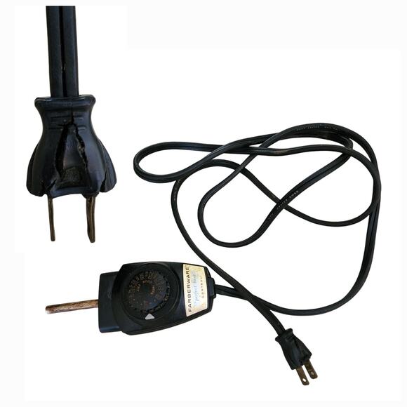 Cord has some cracking at plug end, which may need fixing at some point. It is very easy to get a kit for a few dollars at a hardware store and replace just that end. I've done it in a few minutes before.