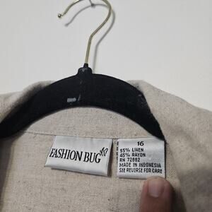 Vtg Fashion Bug Floral Linen Button Up Top Size 16 Embroidered Beige Boho Beach