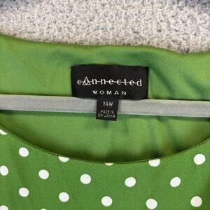 Vtg Faux Wrap Dress 14W Polka Dot Garden Party Derby Stretch Ruched Classic City