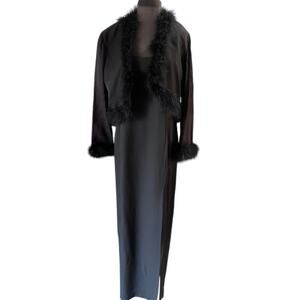 Vtg Feather Boa Trim Bolero Maxi Dress Coord Set 14 Glam Whimsigoth