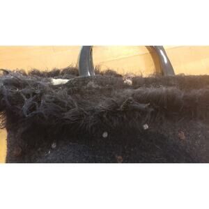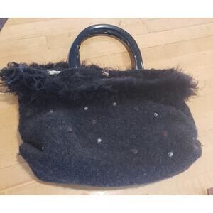 Vtg Felted Wool Purse Large Black faux Feathers Lined Virginia Rowan Rokholt bag