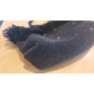 Color: Black with multicolor (brown, white, gray) felted polka dots