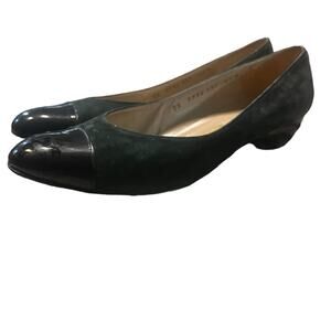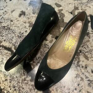 Vtg Ferragamo Green Suede Cap Toe Classic Preppy Ladylike Ballet Flat Shoe 8.5B
