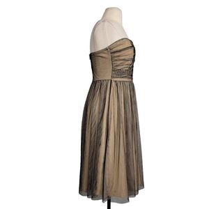 Vtg Fervour Black Nude Tulle Strapless Midi Dress Sz XS Fairy Whimsygoth USA