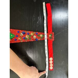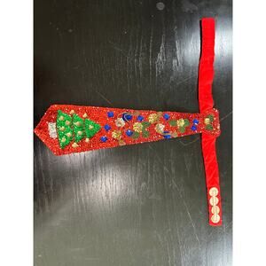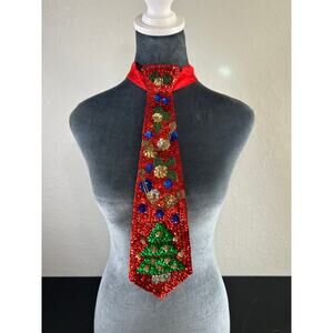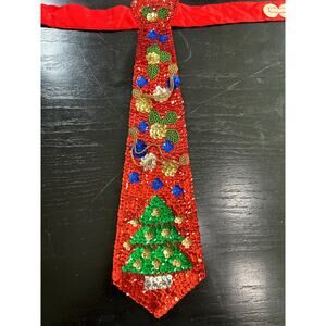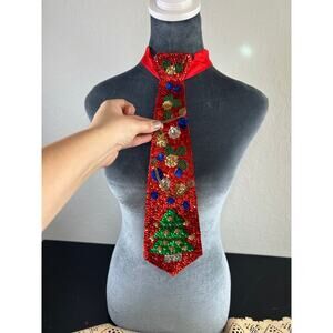Vtg- Festive Christmas Sequin Silk Tie- Adjustable neck- womens sparkle beaded
