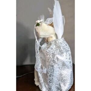 Vtg Fiber Optic Angel Tree Topper Light Up Silver White Gown Christmas 15"