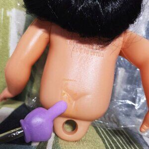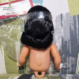 Vtg Fibre Craft Doll Pillow Doll 8" Tall Poupee Coussin Brown Hair Brown Eyes