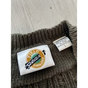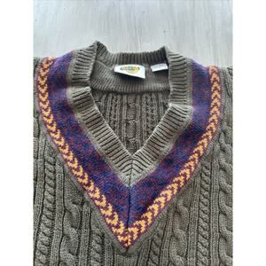 Vtg Field Gear Green Cable Knit V-Neck Tennis Cricket Sweater Sz L