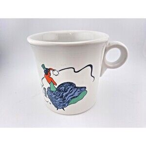 Vtg Fiesta Fiestaware Coffee Cup Mug Dancing Lady Woman White Multi Colorful EUC