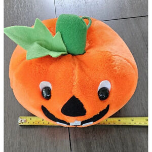 This vintage Fiesta stuffed pumpkin plush is the perfect addition to any holiday or Halloween decor. With its vibrant orange color and toothy grin, it's sure to bring a smile to anyone's face. Made in Thailand in 1989, this small (6-14 in) pumpkin is recommended for ages 4 and up.