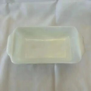 Vintage Fire King by Anchor Hocking Milk Glass 1 QT Loaf Pan Bakeware Dish Harvest Vegetable Pattern