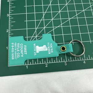 Vtg First Country Title Co. Advertising Plastic #1 Keychain Aqua Mint Key Ring