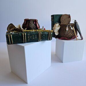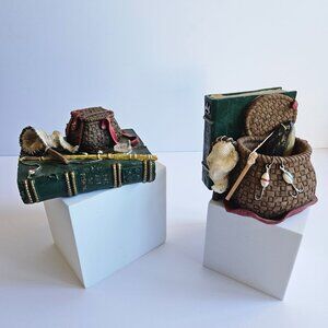Vtg Fishing Desk Set Figurines with Tackle and Creel Small Resin Bookend