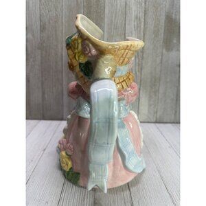 This charming Fitz and Floyd Omnibus Country Garden Bear Pitcher from 1995 adds a touch of whimsy to any table setting. Beautifully painted with intricate detail, it holds 1.25 quarts of your favorite beverage.