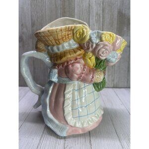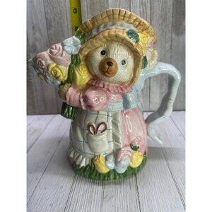 Vtg Fitz & Floyd Omnibus Country Garden Bear Pitcher 1.25 QT 95 Painted 9" Tall