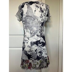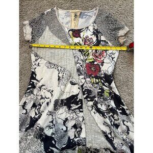 Vtg Fleur De Lis Womens Sz M Mixed Floral Abstract Dress Lace Mesh Tunic
