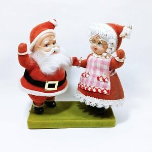 Vintage Flocked Santa & Mrs Clause Christmas Figures