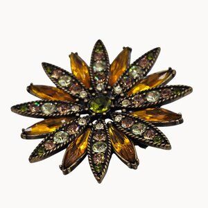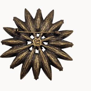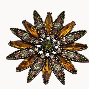 Vtg Floral Brown Multicolor Bronze Tone Kiam Family Brown/Yellow Atomic Signed Pin Lapel Green