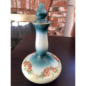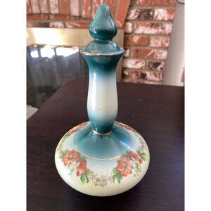 Vtg Floral Bud Vase Genie Bottle Lid Victorian Art Glass 1920's Austria