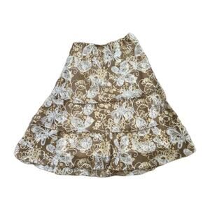 Vtg Floral Butterfly Midi Skirt Womens 12 Brown Tiered Fairy Boho Hippie Flowy