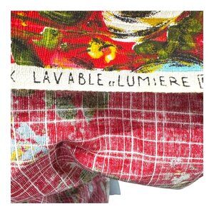 Vtg Floral Curtain Kitchen Mod Fabric 1 yard Solarex Lavable Lumiere Red White