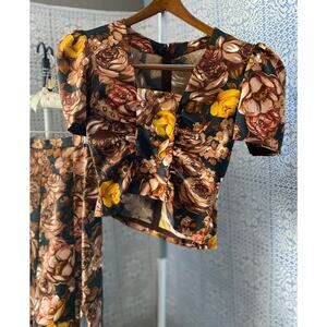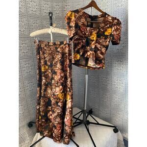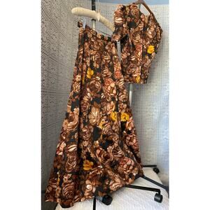 Beautiful Brown Floral Print 2piece Skirt & Blouse Set, 30’s 40’s inspired!
