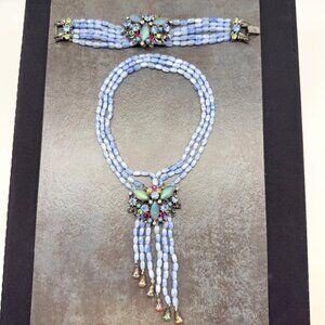 Vtg Florenza Glass Bead Multi Strand Necklace Bracelet Set Rhinestone Colorful