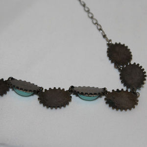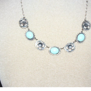 Vtg Flower Necklace Turquoise Glass Silver Tone